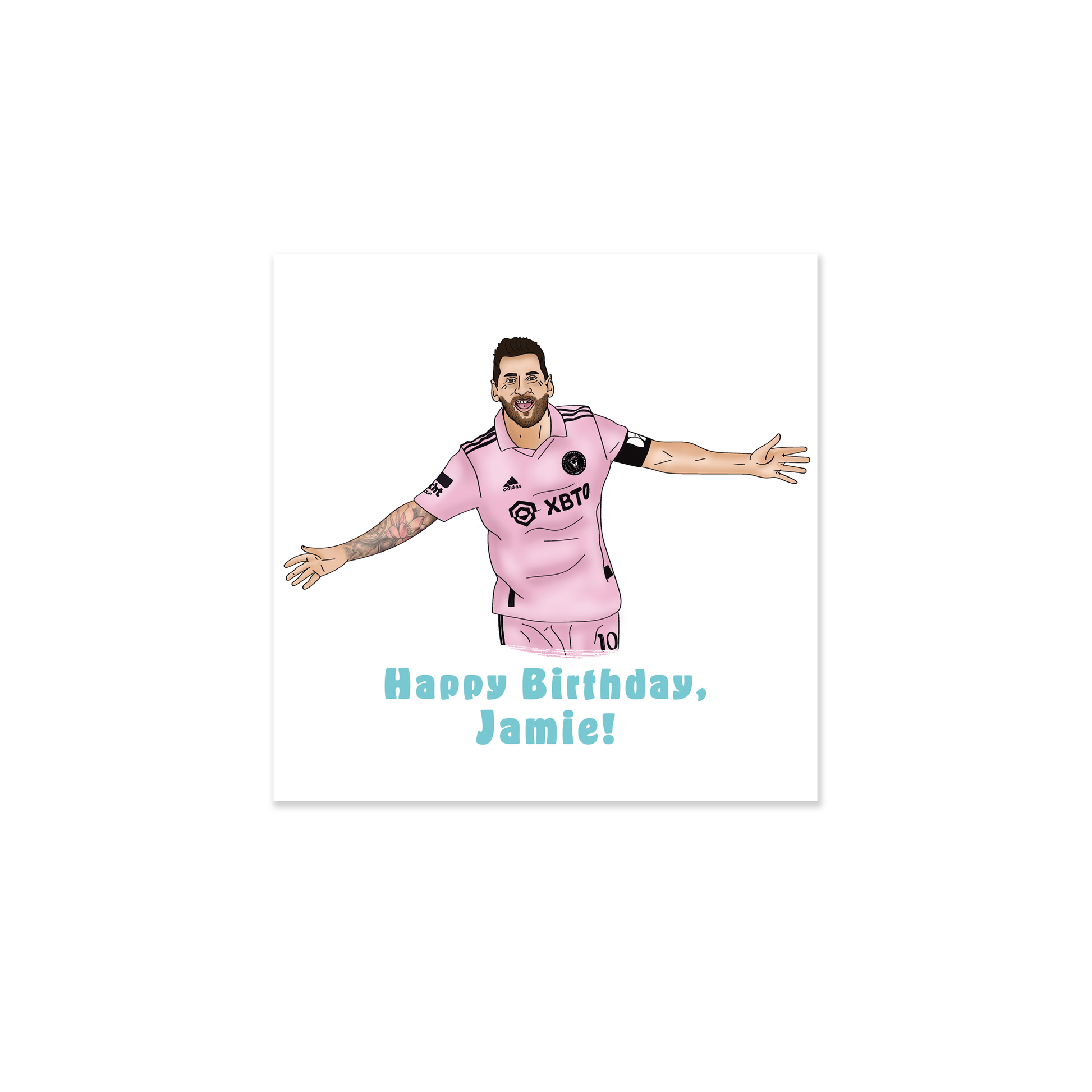 Celebrate their special day with this Messi inspired Birthday Card, perfect for any devoted Messi or Inter Miami fan. This unique card allows you to add a personal touch by including the recipient's name, creating a truly personalised experience. Crafted from high-quality 300gsm matte card.